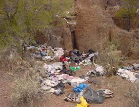 After walking hundreds of miles — often all the way from Honduras or Guatemala — these immigrants are led through the desert, across the Mexican–US border, by people-smugglers who are often armed. After another 30 miles (50 km), they get close to civilization and leave their junk behind in a national park, so that they’re not as easy to identify.